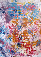 N.B.:Le "onde" che si vedono in foto non sono nel gelly plate, ma sulla carta che c'è sotto.
